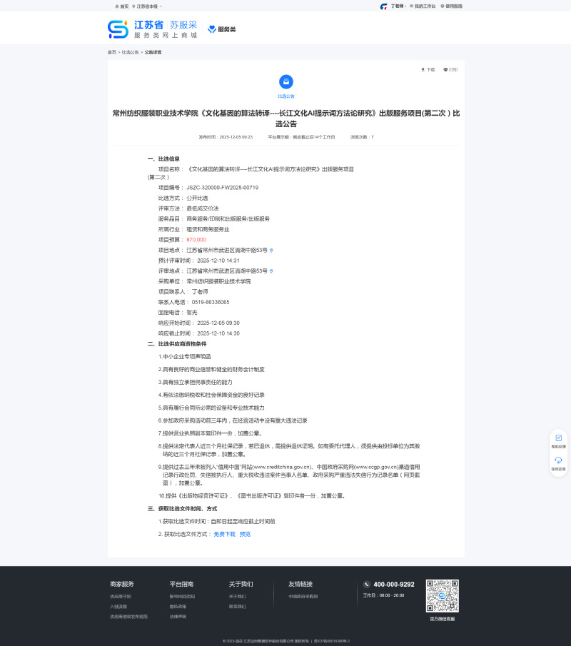 【比选公告】《文化基因的算法转译----长江文化AI提示词方法论研究》出版服务项目(第二次)比选公告