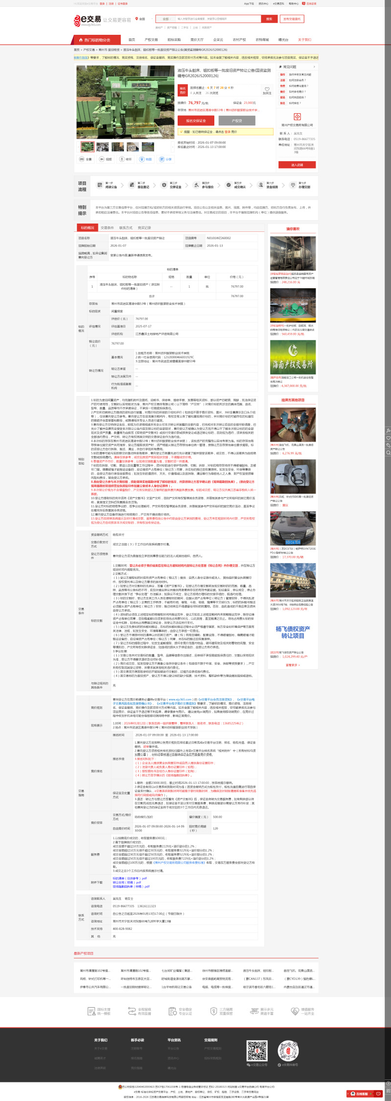 【转让公告】液压牛头刨床、铝扣板等一批废旧资产转让公告(国资监测编号GR2026JS2000126)