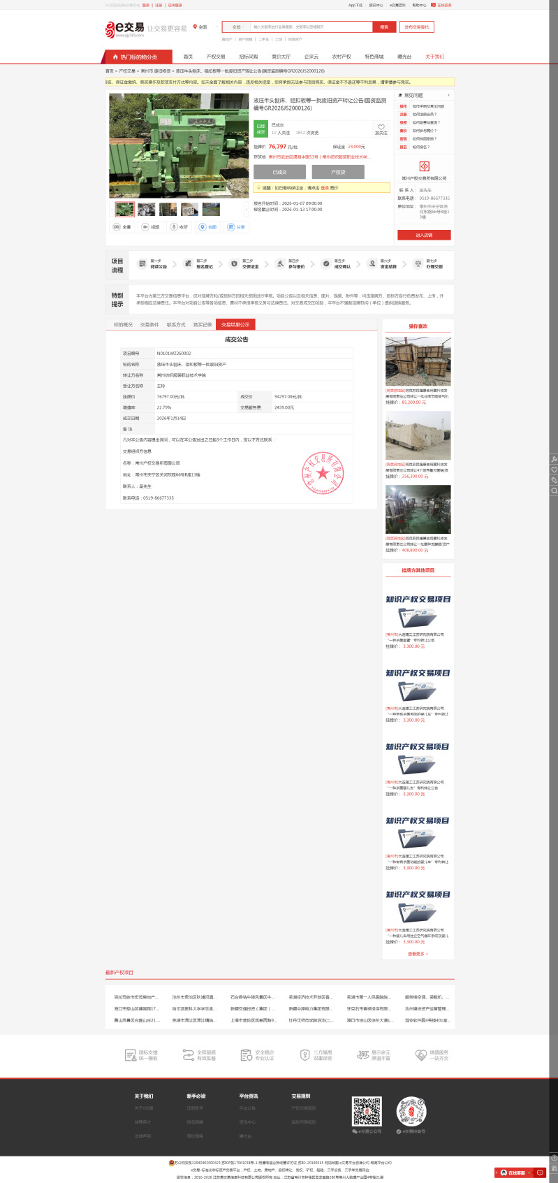【转让结果公告】液压牛头刨床、铝扣板等一批废旧资产转让结果公告(国资监测编号GR2026JS2000126)