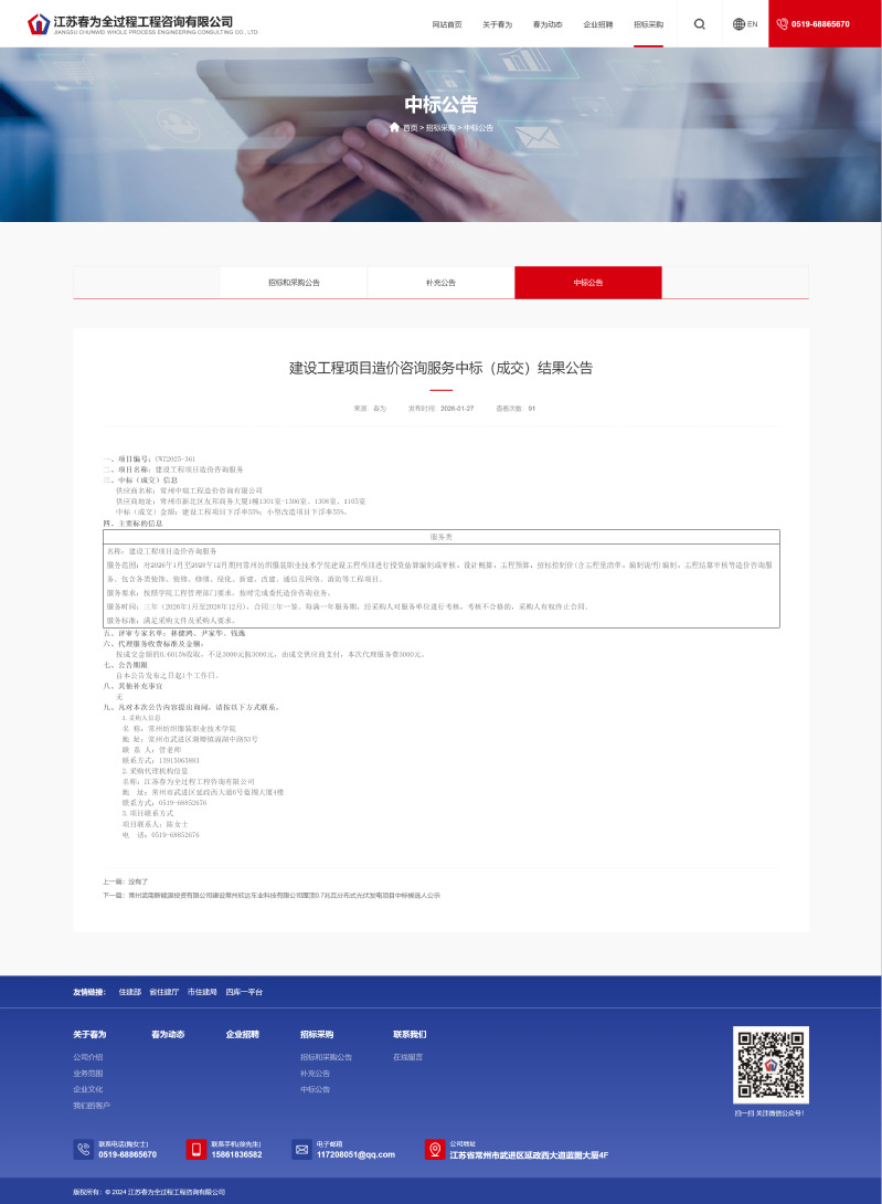 【成交公告】建设工程项目造价咨询服务成交公告