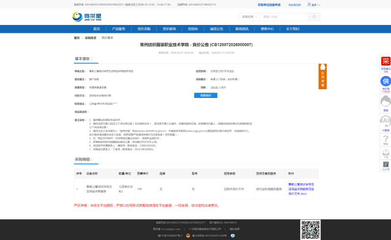 【采购公告】青教公寓培训学员生活用品采购服务项目询价公告
