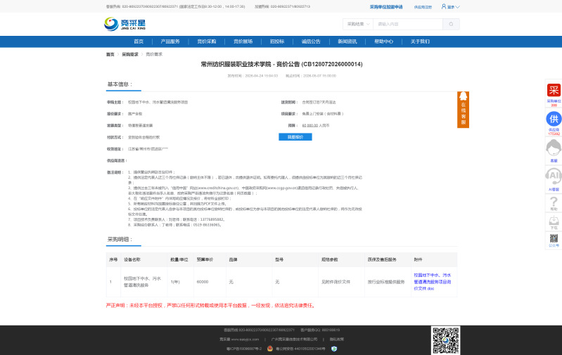 【采购公告】校园地下中水、污水管道清洗服务项目询价公告