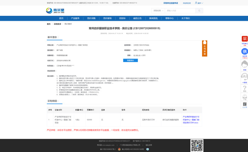 【采购公告】产业用纺织品设计与织造中心—智能门锁项目询价公告